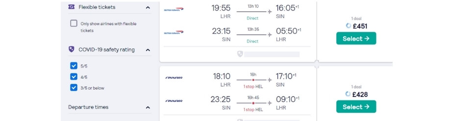 The cheapest flights are always showing in green within the calendar so you can quickly ensure you don’t pay more than you need.